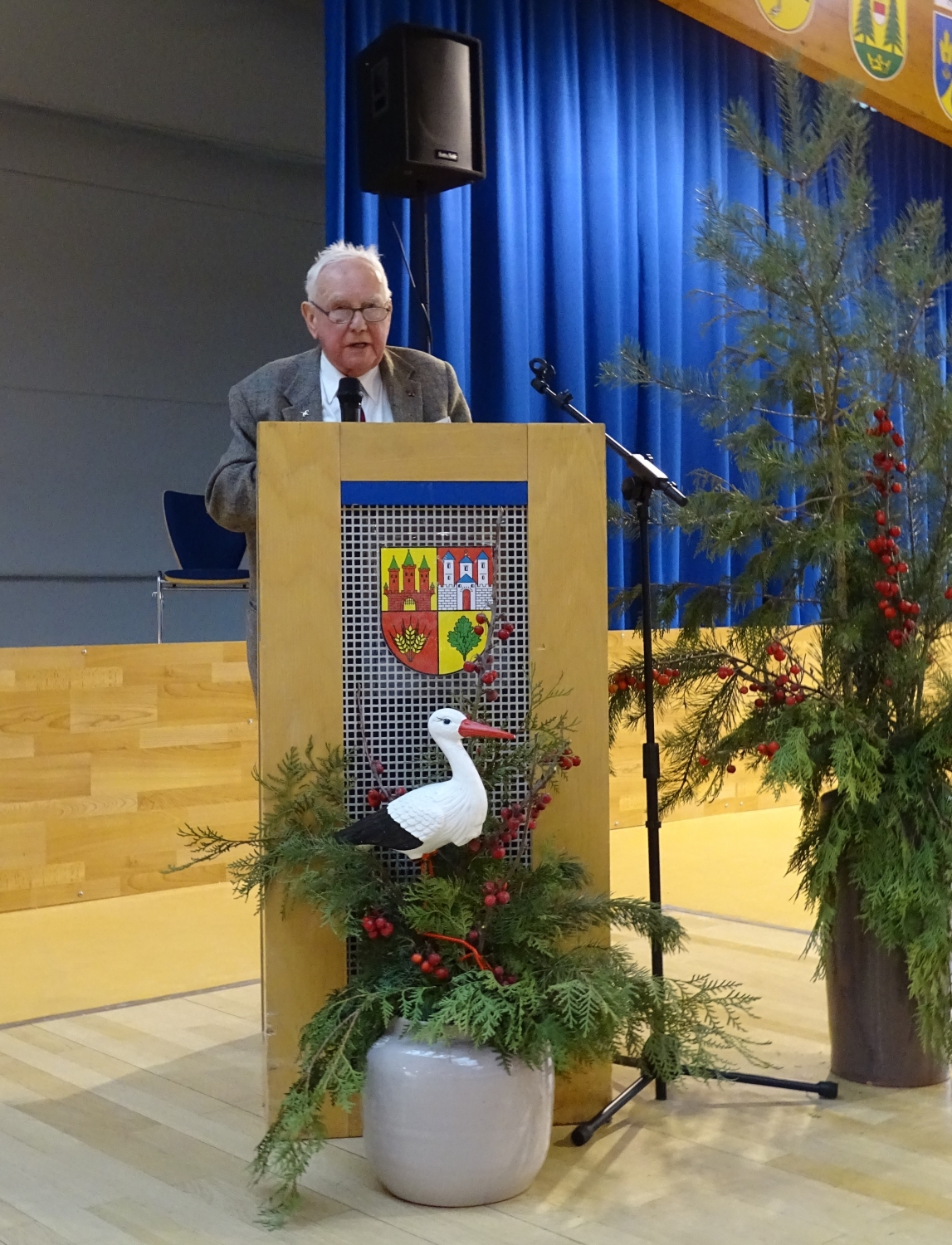 Antje Kaatz berichtet: Längst abgeflogen sind die im Sommer in unserer Region noch recht regelmäßig anzutreffenden schwarz-weißen Großvögel. Während sie in Südeuropa und Afrika ihr Glück (=Futter) suchen, trafen sich am vergangenen 3. Adventswochenende in der Möckeraner Stadthalle 80 Weißstorchexperten- und Expertinnen und Interessierte. Aus ganz Deutschland und sogar Dänemark und Lettland reisten die Fachleute an, um Themen wie aktuelle Forschungsmethoden, Ursachen für Bestandsrückgänge, Gefährdung sowie Parasitierung beim Weißstorch zu diskutieren.