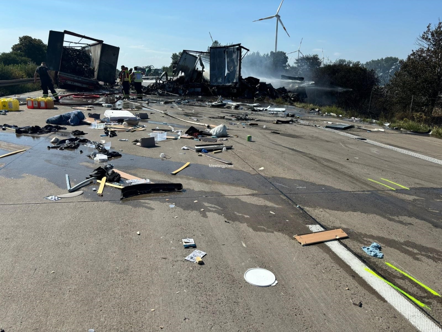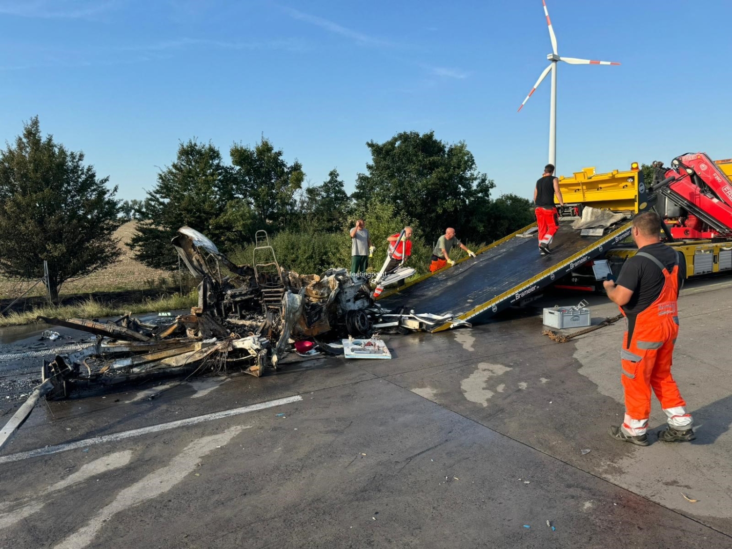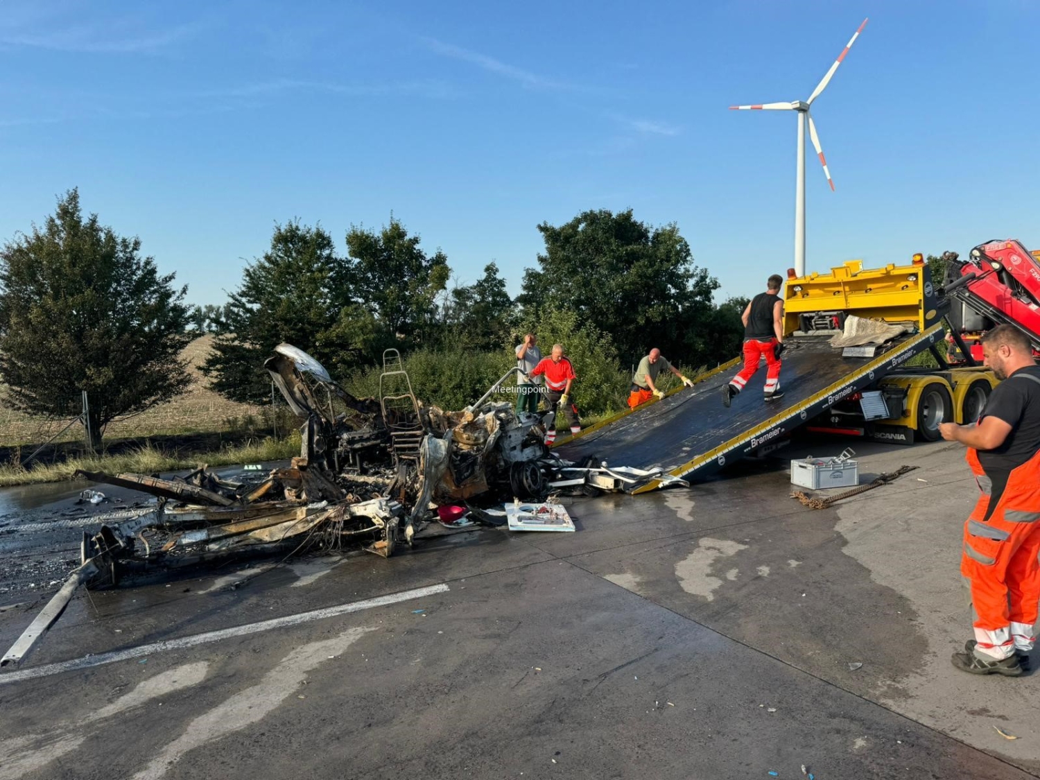 Auf Grund der Rauchentwicklung und weil man noch nicht abschätzen kann, ob Trümmerteile auf der anderen Fahrbahn liegen, ist derzeit auch die Gegenrichtung nach Berlin vollgesperrt.
