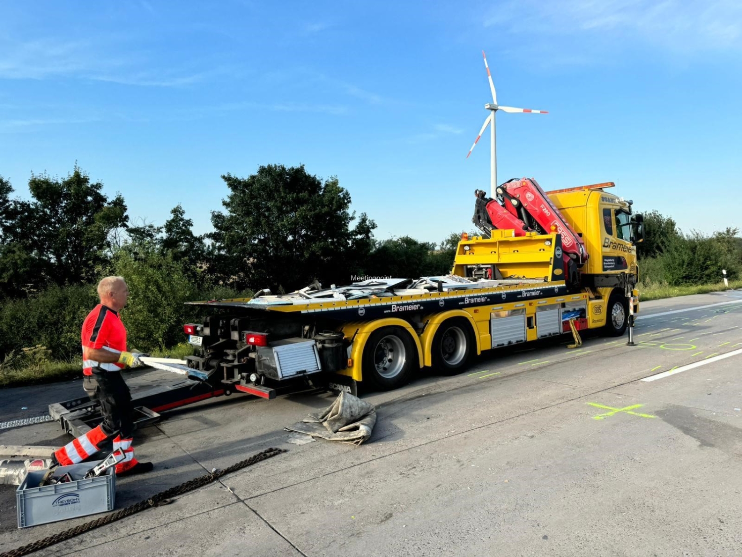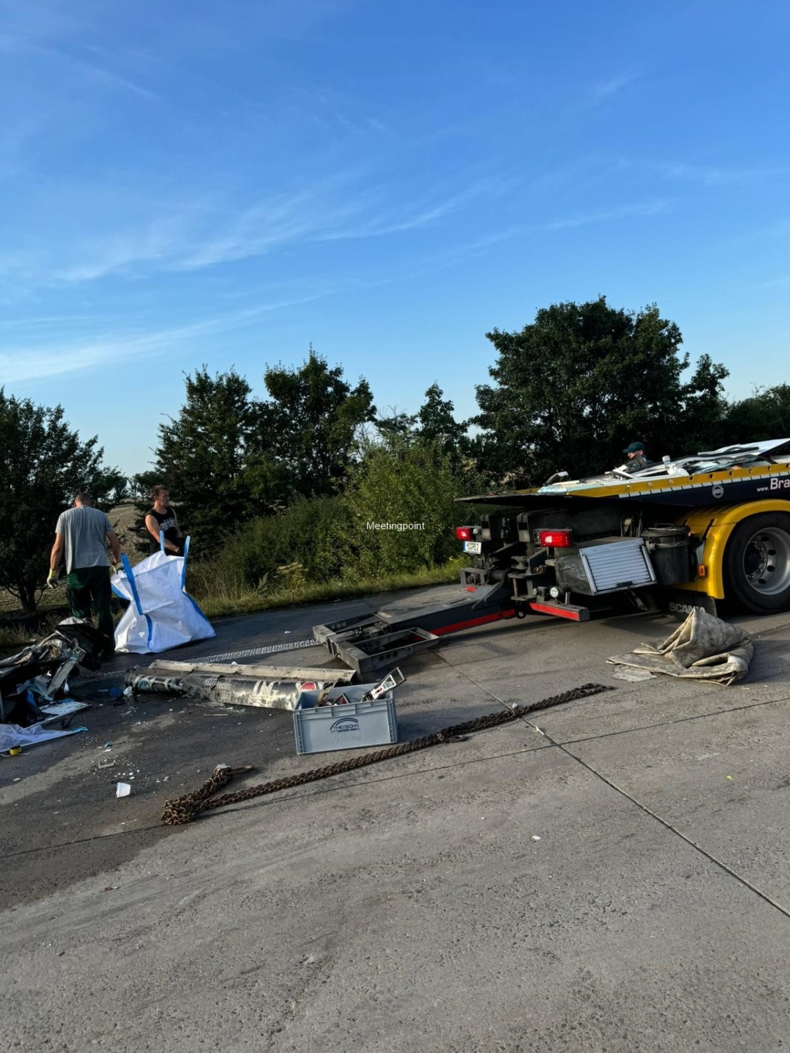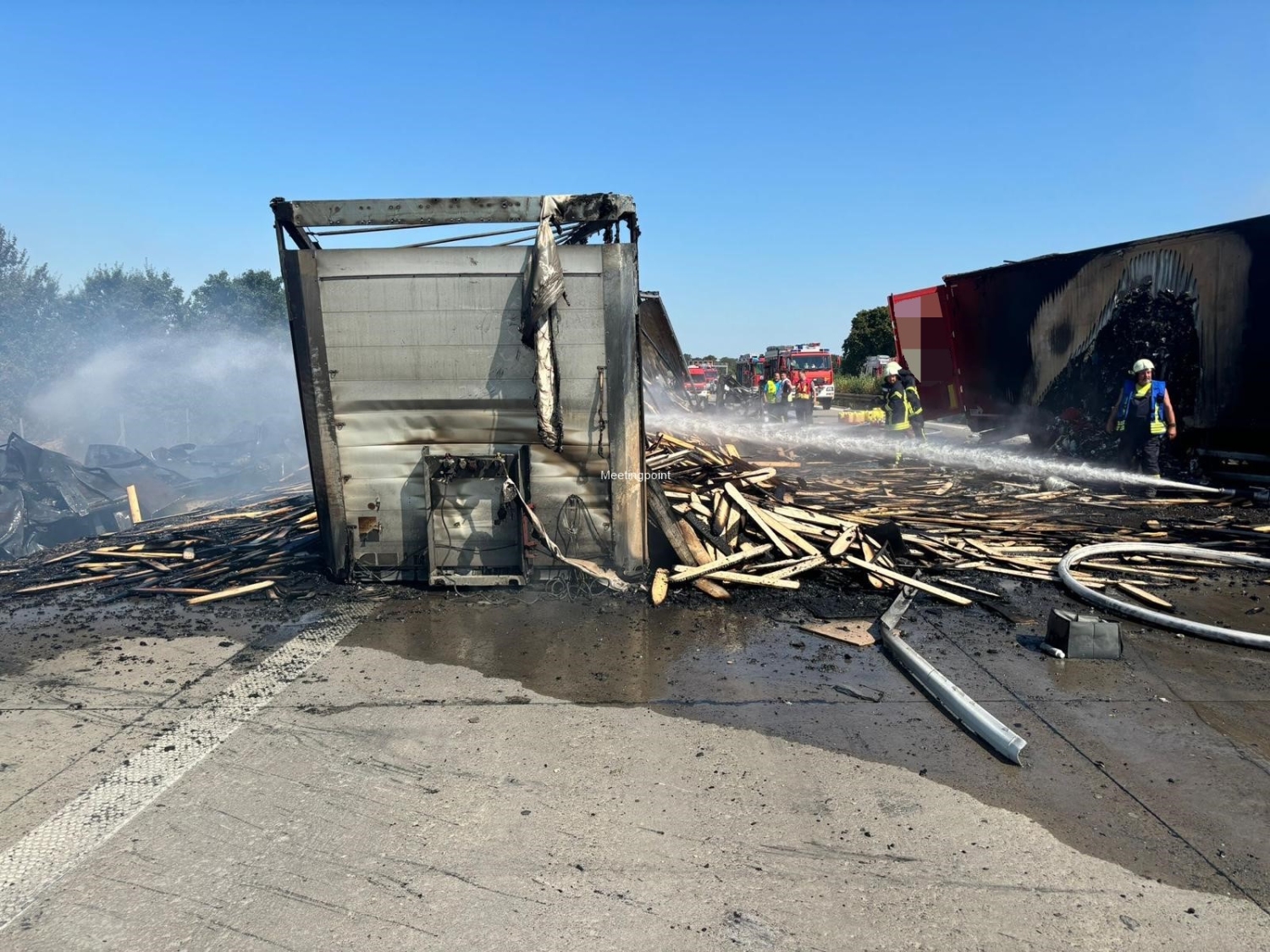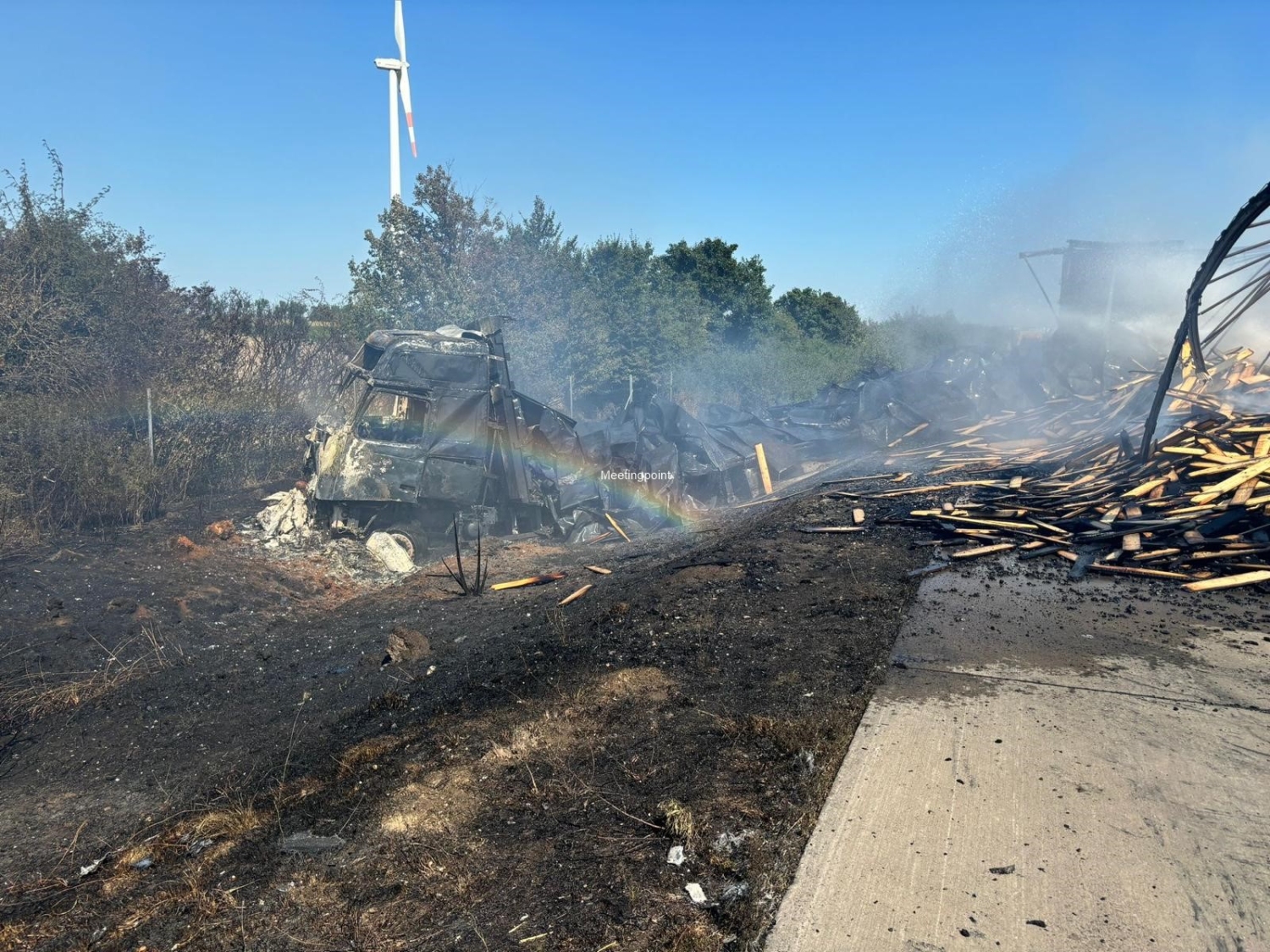 Auf Grund der Rauchentwicklung und weil man noch nicht abschätzen kann, ob Trümmerteile auf der anderen Fahrbahn liegen, ist derzeit auch die Gegenrichtung nach Berlin vollgesperrt.