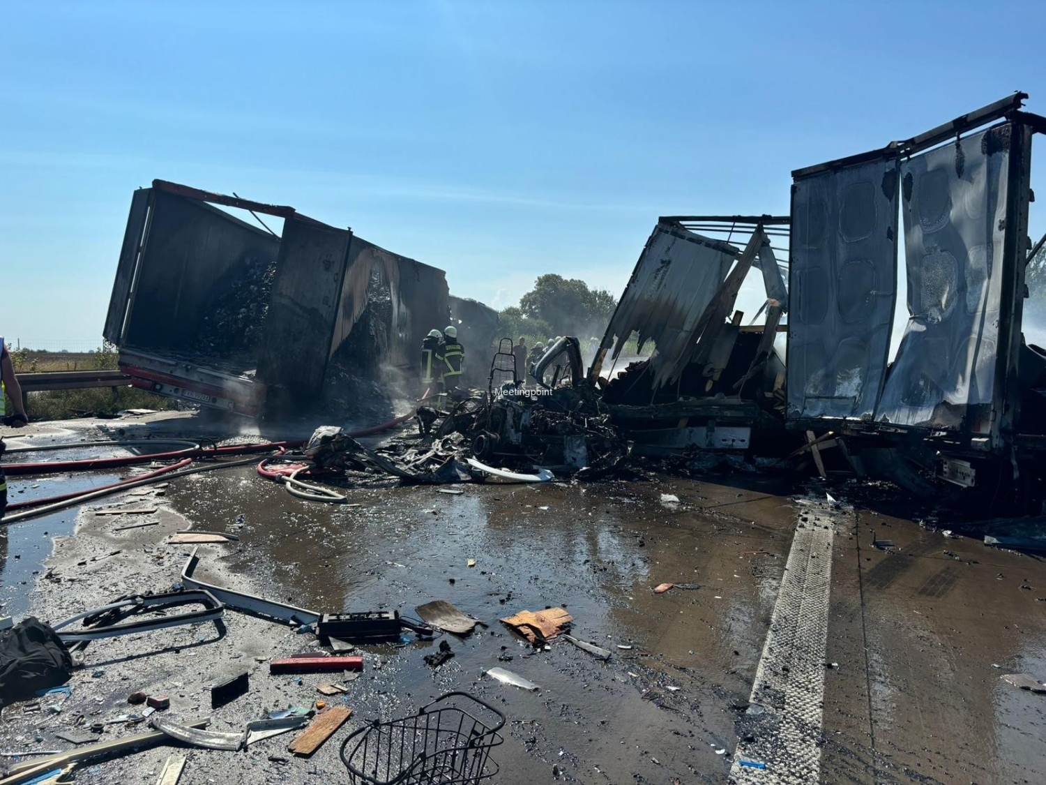 Nach ersten Erkenntnissen kam es an der Unfallstelle zu einem Auffahrunfall mit einer raschen Brandentwicklung und einem zeitnahen Ausbreiten der Flammen vom auffahrenden LKW, auf das davor fahrende Wohnmobil sowie der davor befindlichen zwei LKW. Hierbei übersah ein 65-jähriger polnischer LKW-Fahrer das Stauende vor einer Baustelle und fuhr ungebremst auf das Wohnmobil auf. In der weiteren Folge wurde dieses auf die davor haltenden LKW geschoben.