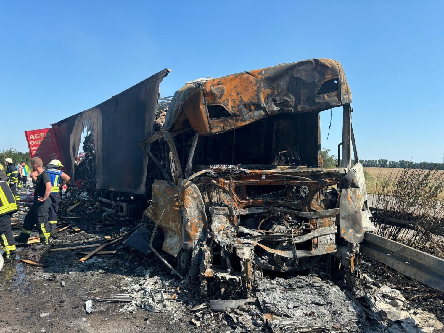 Die Strecke in Richtung Hannover wird laut eines Sprechers der Polizei in wenigen Minuten vorerst wieder auf der mittleren und linken Spur freigegeben. Einzige Ausnahme sind LKW, die mehr als 8 Tonnen wiegen. Diese müssen immer noch ab Irxleben abfahren. Dieser Zustand wird bis zum Wochenende andauern, dann wird die Straße wohlmöglich ein zweites Mal komplett gesperrt. Die Straßenmeisterei versucht dann über das Wochenende die Autobahn an der Stelle komplett zu sanieren, sodass der Verkehr in der nächsten Woche wieder ungehindert fließen kann. Ein Feuerwehrsprecher hat inzwischen weitere Einzelheiten zum Einsatz mittgeteilt. Demnach hatte man bei den Löscharbeiten mit einem Wassermangel zu kämpfen. Diesen Mangel konnte man nur mit Hilfe von zwei Landwirten überwinden, die mit ihren Landwirtschaftlichen Tankfahrzeugen ausgeholfen hatten. Zudem entfachte sich der Brand noch ein zweites Mal, sodass die Feuerwehr erneut ausrücken musste. Erst in den späten Abendstunden hatte man die brandtechnische Situation unter Kontrolle. Insgesamt wurden ca. 200.000 Liter Wasser, im Verbund mit Löschschaum, zur Brandbekämpfung eingesetzt. An dem Einsatz waren 90 Einsatzkräfte, sowie 20 Fahrzeuge der Feuerwehr beteiligt. Hinzu kommen dann noch ein Rettungshubschrauber, zwei Traktoren samt Löschtanks und die Einsatzkräfte der Polizei und des Rettungsdienstes selbst.