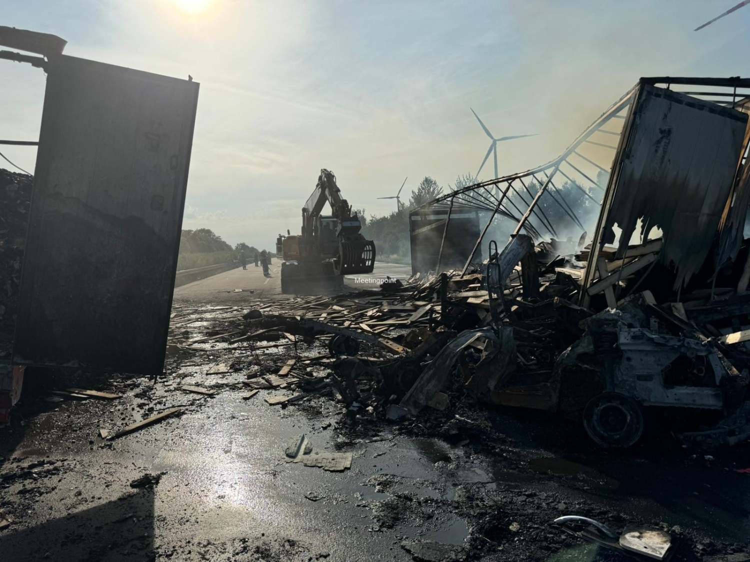 Nach Angaben der Polizei, konnte die Unfallstelle über Nacht restlos beräumt werden. Die Autobahnmeisterei ist momentan dabei, sich an der Unfallstelle einen Überblick zu verschaffen. Auf Grund der Brände hat eventuell auch die Straße Schäden davongetragen und es muss ausgebessert werden. Die Autobahn bleibt in Richtung Hannover, nach einer vorsichtigen Schätzung, noch mindestens bis 12 Uhr voll gesperrt.