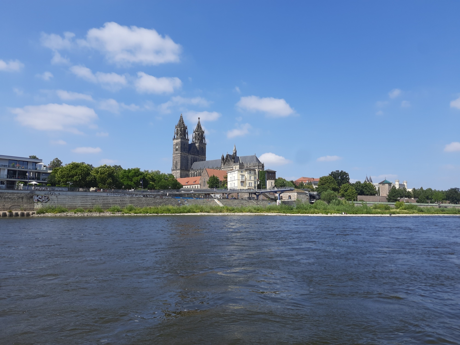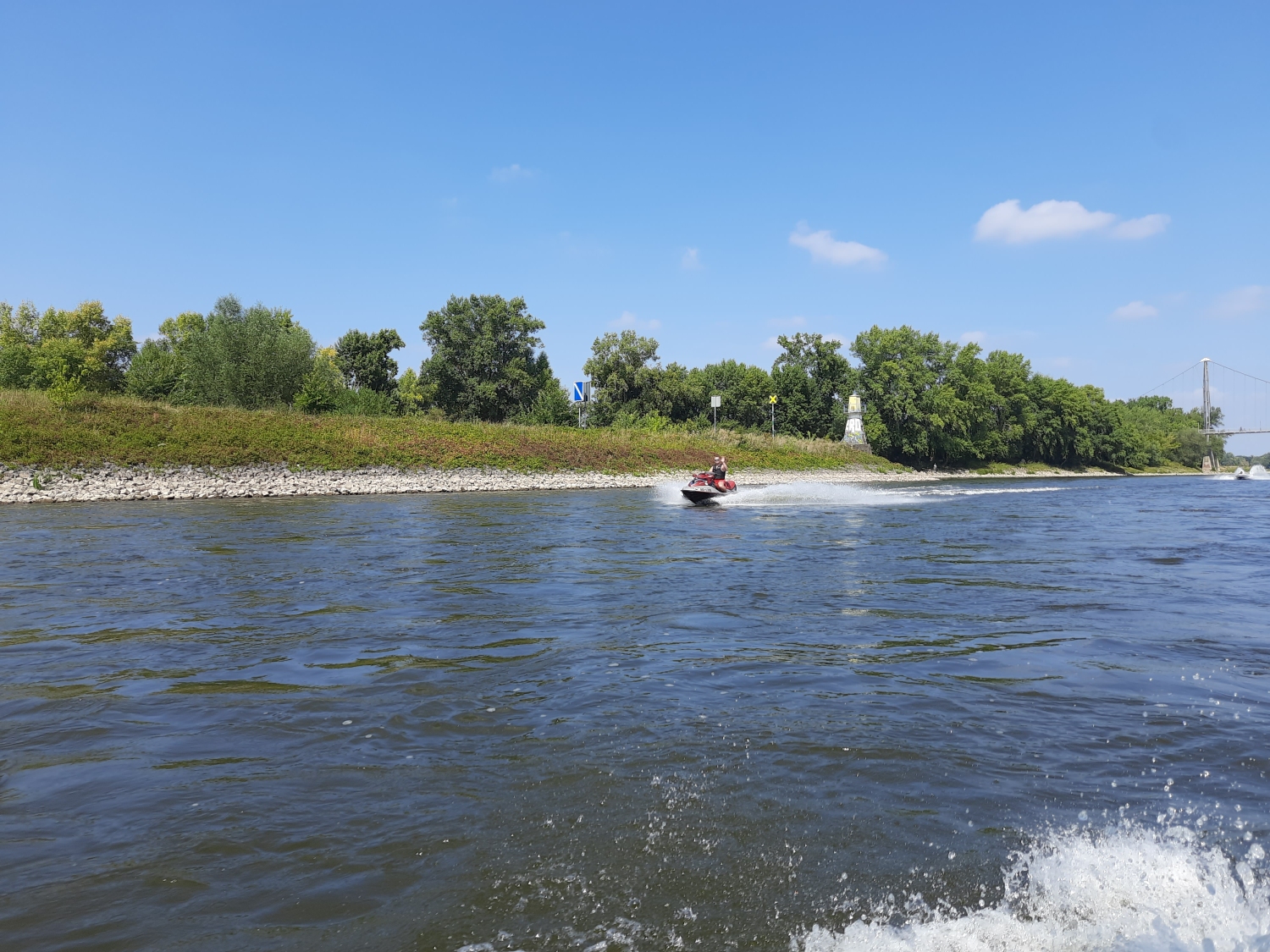 Nun ging es mit dem Strom die Elbe hinab – deutlich schneller. Zum Mittag hielten wir nochmals beim Mückenwirt an. Die Anlegestelle ist einfach nur top für Gäste die mit dem Boot kommen. Auf dem Weg nach Hohenwarthe begegneten uns Jetskis – ein überraschender Anblick auf der Elbe, denn solche Fahrzeuge verbindet man sonst eher mit dem Urlaub am Meer.