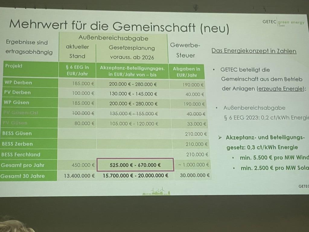 Die Einwohnerfragestunde wurde vom Vorsitzenden des Gemeinderates, Dr. Stefan Ringwelski, kurz vor 22 Uhr beendet. Dies auch, um Hannes Schürmann von der GETEC green energy GmbH Gelegenheit zu geben, die geänderten Entwürfe für die EEG-Projekte in Elbe-Parey kurz vorzustellen. Diese berücksichtigen viele der geforderten Änderungen, weisen dadurch aber auch geringere Einnahmen für die Gemeinde aus. - Nach seinen Ausführungen leerte sich die Aula spürbar.