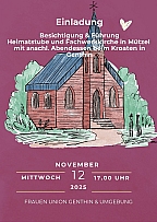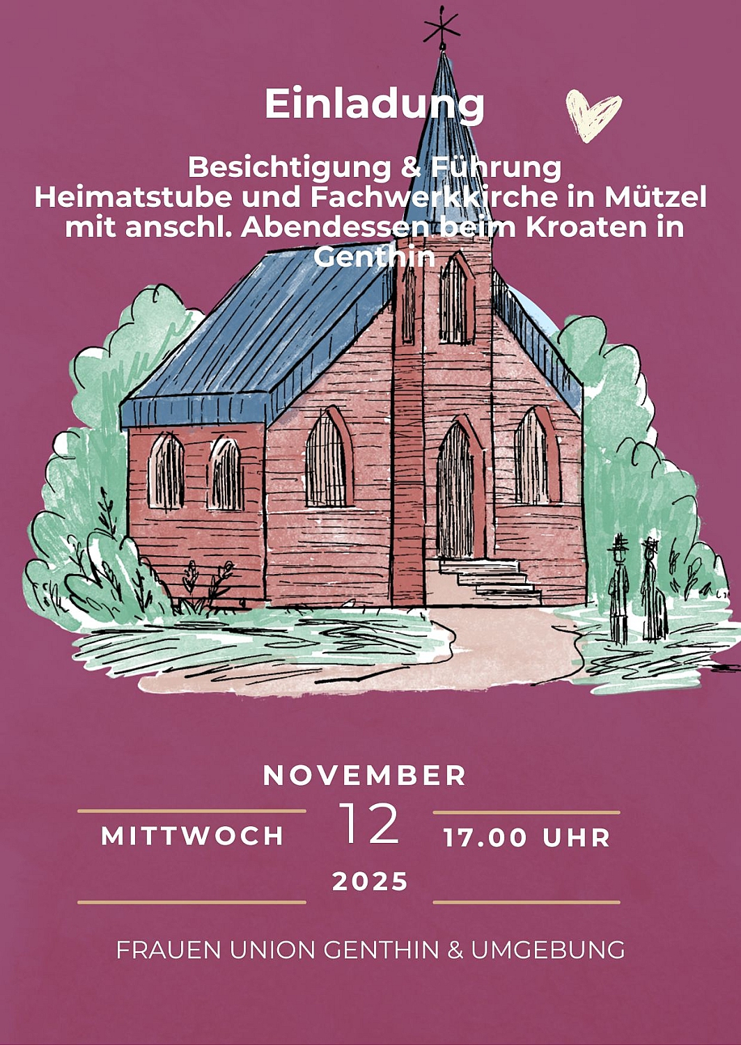 Die Frauen Union Genthin und Umgebung lädt zu ihrer nächsten Veranstaltung am Mittwoch, den 12. November, um 17 Uhr nach Mützel ein.