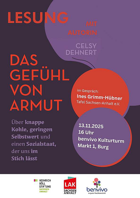 Die Heinrich-Böll-Stiftung Sachsen-Anhalt in Zusammenarbeit mit der Landesarmutskonferenz Sachsen-Anhalt laden am Donnerstag, 13. November, zu einer Lesung mit anschließender Diskussion zu dieser Thematik ein.