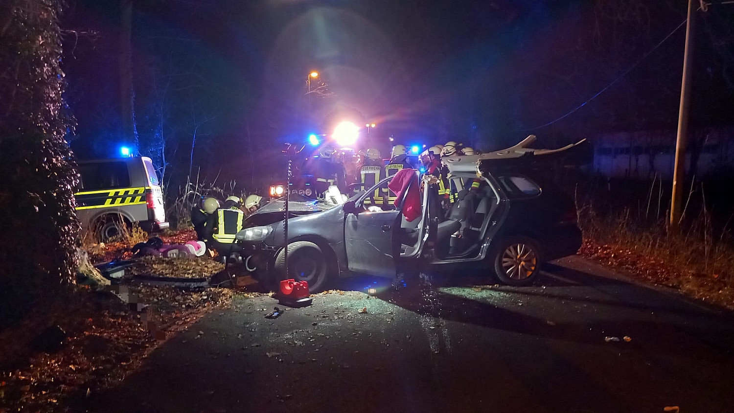 Die Kreisstraße war für die Dauer der Rettungs- und Bergemaßnahmen voll gesperrt. Die Polizei hat die Ermittlungen zum genauen Unfallhergang aufgenommen.