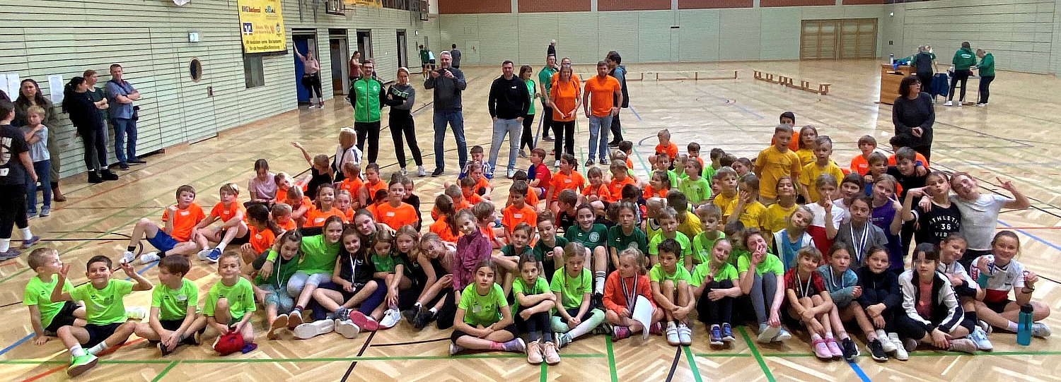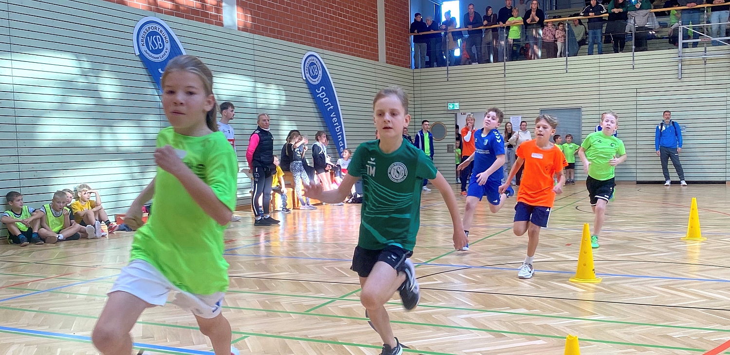 Doch vor dem Jubel hieß es für die Kinder und Jugendlichen, sich gegeneinander zu messen. Jederzeit spannend war es unter anderem in den Laufdisziplinen. Mit gelben Hütchen war die Laufrunde über das gesamte Hallenparkett markiert. Die jungen Sportler sprinteten in der Staffel oder dem Vier-Runden-Lauf um jene Medaillen und Urkunden, die sie später überreicht bekamen. „Ich habe in bisschen Angst“, sagte die siebenjährige Alma aus der Grundschule Biederitz kurz vor ihrem Einsatz als Startläuferin ihrer Staffel. „Musst du nicht“, beruhigt sie Betreuerin Lilli Schnelle: „Ihr alle könnt sehr stolz sein, auf das was ihr bis jetzt schon erreicht habt.“