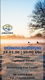 Der Startschuss für die Tour fällt um 10 Uhr direkt an der Jagdhütte in Güsen. Nach der Wanderung durch Wald und Flur wartet auf alle Teilnehmer die verdiente Belohnung: Ein zünftiges Grünkohlessen in geselliger Runde.