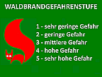 Die Waldbrandgefahrenstufe 2 bedeutet eine geringe Gefahr (WBI 2) für Waldbrände. Es ist erhöhte Vorsicht geboten, da Bodenfeuer möglich sind. Das Rauchen im Wald oder in der Nähe (weniger als 15m) ist verboten, und offenes Feuer ist nur auf offiziellen Grillplätzen erlaubt. Der Wald kann weiterhin uneingeschränkt betreten werden.
