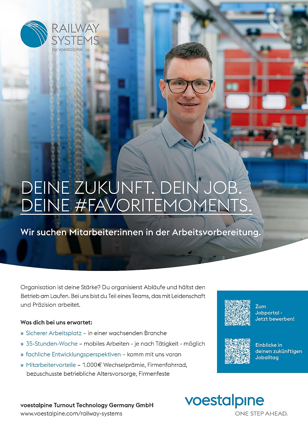 Die voestalpine Turnout Technology Germany GmbH, Tochter des weltweit führenden Anbieters von Systemlösungen für die Bahninfrastruktur, voestalpine Railway Systems, ist Spezialist im Bereich Weichenbau. Für unsere spannenden Projekte suchen wir Maschinenbediener:innen und viele andere Mitarbeiter, die mit uns gemeinsam Großes bewegen.