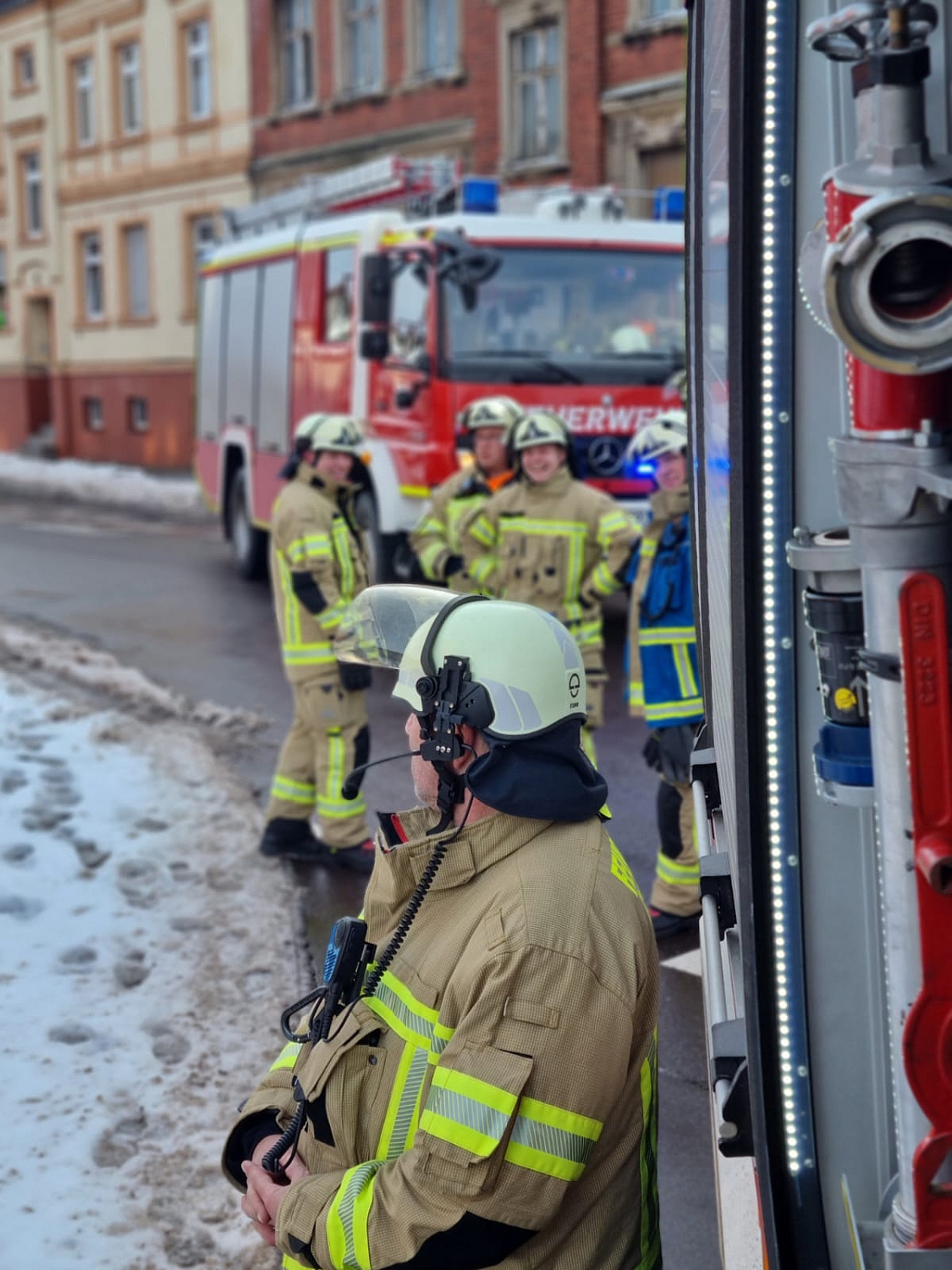Die Erholung währte nicht lange. Um 11:54 Uhr folgte die Alarmierung zu einem vermeintlichen Gasaustritt in einem Mehrfamilienhaus. Nach einer gründlichen Lageerkundung vor Ort konnte jedoch Entwarnung gegeben werden – die Meldung bestätigte sich nicht.