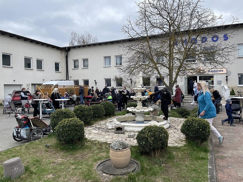 Naschwerk-Suche und Torwandschießen Zweite Station war der heimische Sportplatz. Hier hatten die Vereinsmitglieder alles akribisch vorbereitet. Damit die kleinsten Teilnehmer nicht leer ausgingen, wurde die Eiersuche strategisch getrennt: Kita- und Schulkinder suchten in eigenen Bereichen nach den österlichen Leckereien. Sportlich Ambitionierte konnten zudem ihr Geschick an der Torwand unter Beweis stellen. Den kulinarischen Abschluss der Wanderung bildete ein gemeinsames Mittagessen im Restaurant „Rhodos“, wo sich die Teilnehmer mit Gyros oder Nudeln für den Heimweg stärkten.