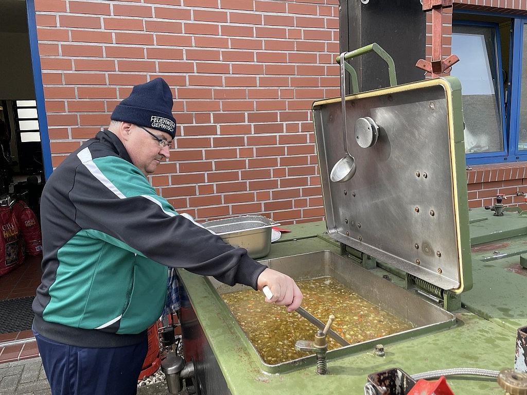 René Schröder bei der Vorbereitung der Erbsensuppe für das Osterfeuer.