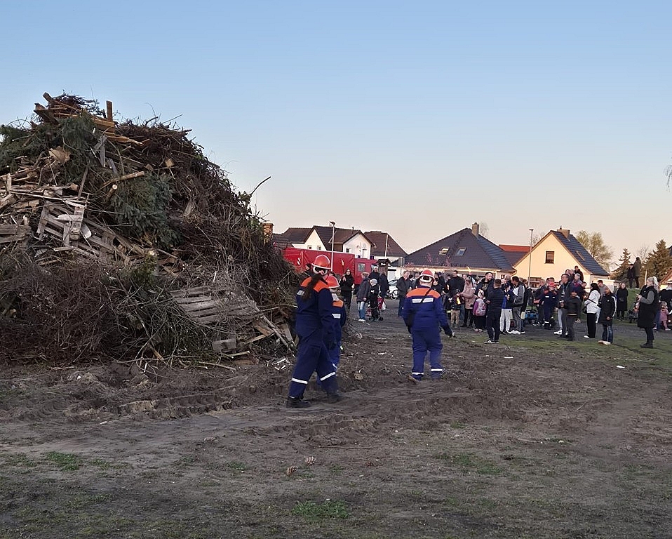 Mitglieder der Jugendfeuerwehr entzündeten das Osterfeuer auf dem alten Bolzplatz.